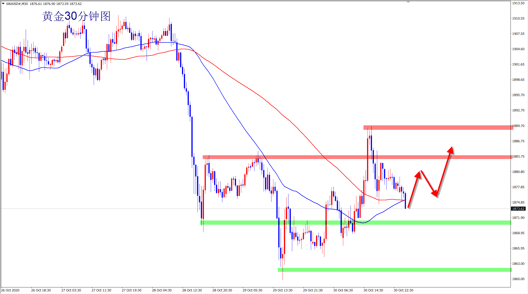 提示:本周数据较多,包括美国大选,大非农,美联储利率决议等超级数据纷纷登场,对黄金的走势会造成不可估量的影响,大家注意控制风险,谨慎操作!当然,风险与机会并存,大捞一把的机会近在眼前! 黄金上周五强势反弹,当前属于震荡走势,早盘如果回落站稳1870的情况下,黄金还是继续反弹看涨,但是跌破位的