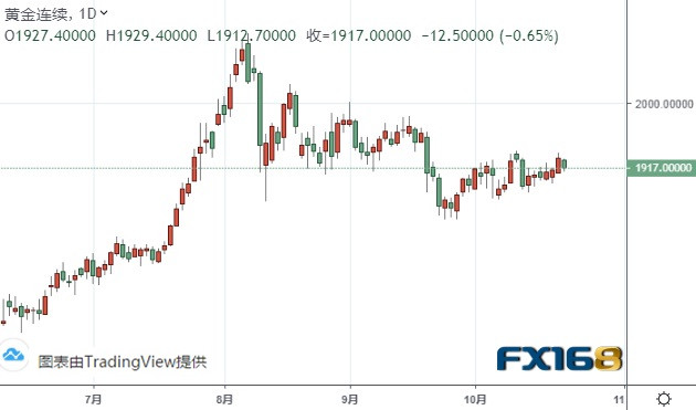 周四(10月22日)亚市盘中,现货黄金持续下行,在跌破1920关口后不断走低,目前逼近1910关口。 新一轮刺激计划磋商迟迟达不成协议,这令黄金多头感到沮丧。 美国民主党籍国会众议院议长佩洛西的办公室发言人DrwHaill表示,佩洛西与财长努钦周三再次通电话,讨论新纾困计划,已进一步拉近双方的立场,接