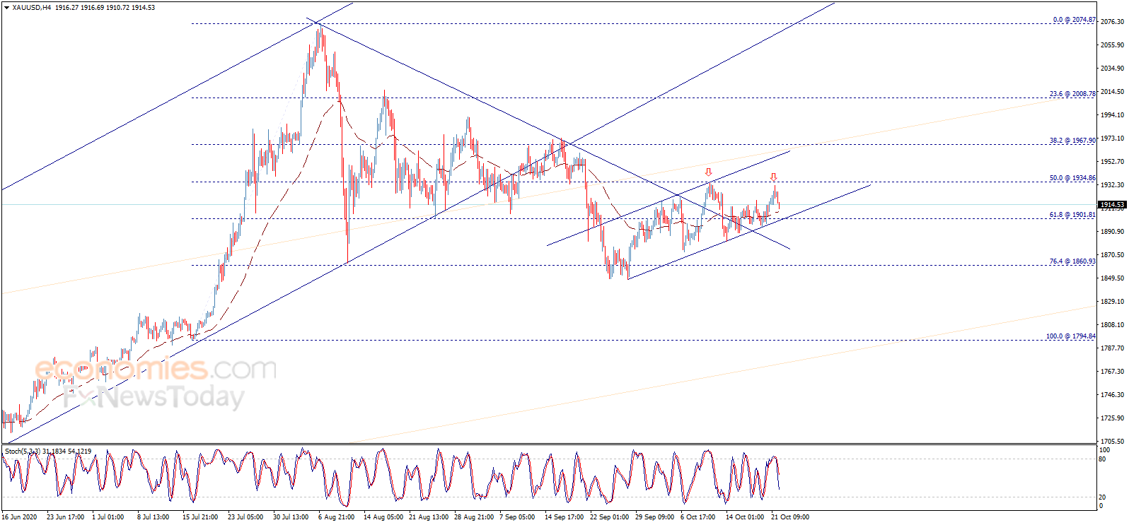 周四(10月22日)亚市盘中,现货黄金明显处于跌势,短线持续下行一度触及1910关口,回吐昨日大部分涨幅,白银扩大跌幅至1%。 亚洲股市正在走低,美国期货市场也在走弱。股市的疲软正帮助美元走强,而美元的上涨又推低了黄金价格。 从基本面来看,市场担心的是美国的刺激协议。俄罗斯和伊朗正在干预