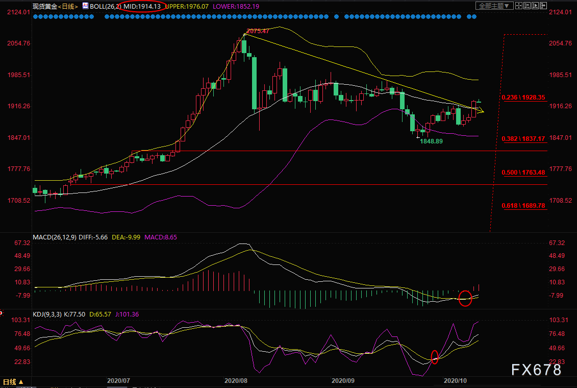 上周特朗普改口恢复谈判,提升了市场对美国推出新一轮财政刺激的预期,帮助美国股市大涨,避险美元大跌创三周新低,金价则顶破了1920关口关口,一度创三周高点至1933.26美元/盎司;尽管周末特朗普和佩洛西就谈判僵局相互指责,降低了短期推出刺激方案可能性,短线金价面临一定的回调风险,但预计本周金价仍有一定的冲