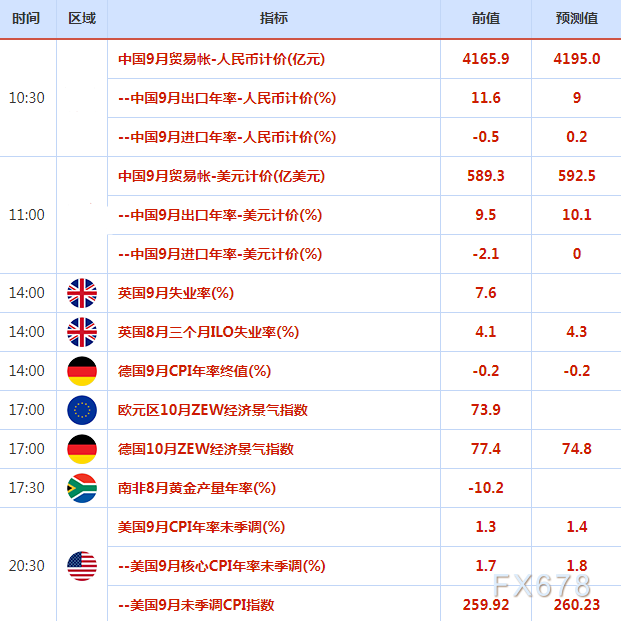 接下来的一周,经济数据方面,将迎来中国9月贸易数据、美国9月CI和美国9月零售销售数据;原油市场,投资者还需留意OC和IA的月度原油市场报告;风险事件相对较少,主要是继续关注美国财政刺激的方案的两党谈判进展和美国大选的相关动态消息,其次是关注欧盟峰会的相关消息;当然,投资者还需关注欧美国家新冠疫情