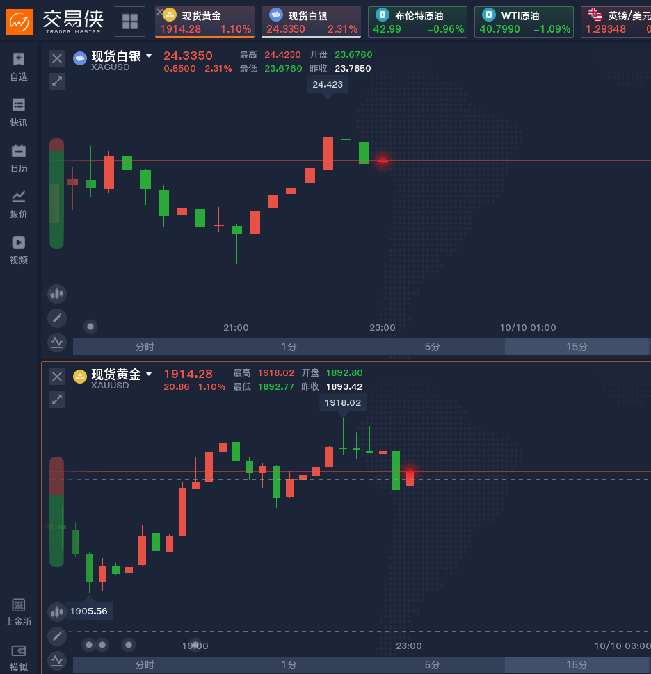 现货黄金日内上破1915美元/盎司,维持看涨趋势;英镑兑美元短线下挫20点,日内由涨转跌。 欢迎来到交易侠「技术刘」栏目,我是你们的首席尬聊官大刘。 周四现货金银双双收涨,消息面上,特朗普讲话为新一轮援助谈判开放窗口,市场对美国财政刺激措施依然抱有乐观预期。周五日间,现货金银维持上行趋势;