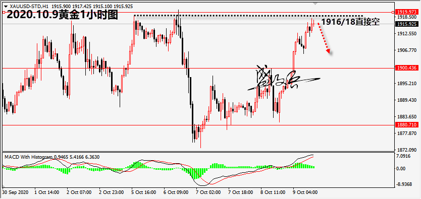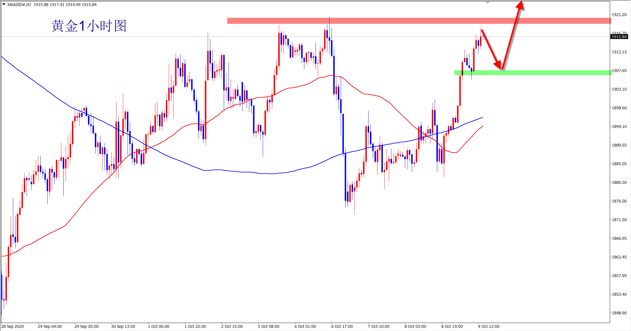 黄金 黄金欧盘随着美元指数持续的走底,黄金再度震荡上扬,最高触及1918一线位置。市场对于美国新一轮财政刺激预期发酵,支持了黄金的上扬。晚盘重点关注美股走势以及美国经济数据对于黄金的影响。 黄金正如笔者的预期上涨,但是目前承压于1918一线。笔者今日明确给出在1915--18区域参与空头,已
