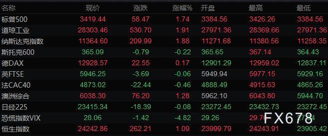 10月7日(周三),道琼斯指数开盘上涨288.83点,涨幅1.04%,报28061.59点;标普500指数开盘上涨33.25点,涨幅0.99%,报3394.20点;纳斯达克综合指数开盘上涨114.75点,涨幅1.03%,报11269.36点。 周二,特朗普宣布叫停刺激法案谈判,给市场带来巨大冲击。但随后他又发表推文称支持独立的经济刺激计划,市