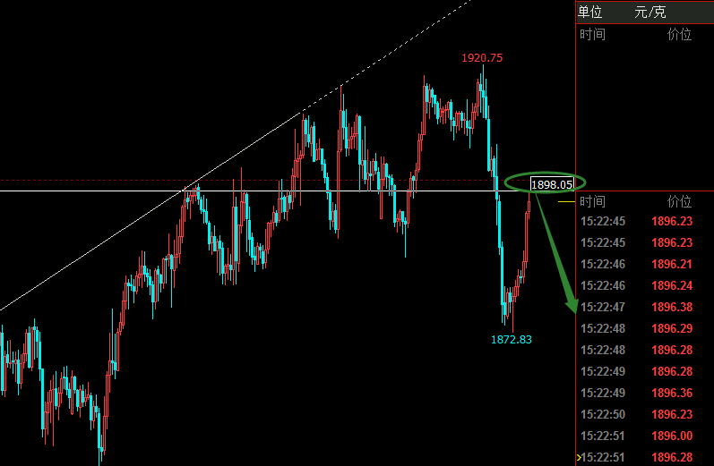 不废话,黄金昨日1917/8空单今天早上1880平仓后,1877/8做多,建议现在1898附近平仓多单,建议反手做空!目前行情来看,黄金就是个大震荡走势,我们参照1900~04区域阻力放空!