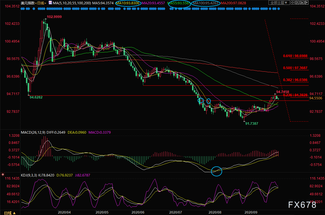 周二(9月29日)亚市盘初,美元指数延续跌势,一度创四日低点至94.11,隔夜美国股市延续大涨走势,打压了美元的避险需求,令美元承压,但94关口附近支撑较强,需要关注。现货黄金小幅冲高,最高曾触及1886.26美元/盎司,美元的走弱和对美国财政刺激的憧憬,吸引了投资者逢低买入黄金。原油市场,股市大涨也给油价提供了