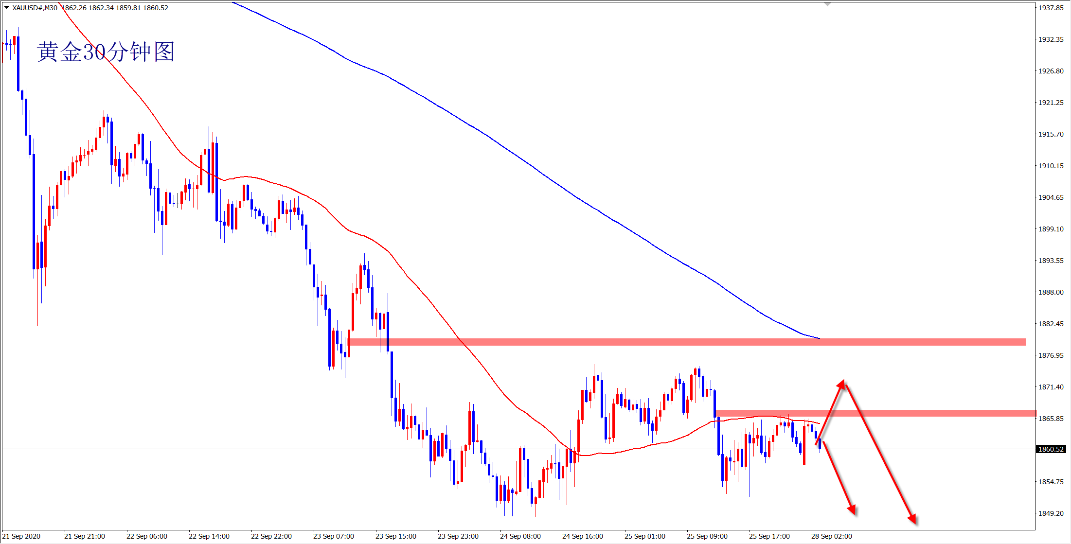 黄金日内维持窄幅波动,空头下跌趋势下的弱势震荡走势,最终难逃再次下跌的命运,当前压力集中于上周五美盘反弹高点1867一线,此位置下依然继续空,如果欧盘突破1867,但是未能突破1878的情况下依然反弹空为主! 黄金早盘已经说过1867和1880位置的重要性,而今日的行情明显的是维持在1867压力位置下运行,非常