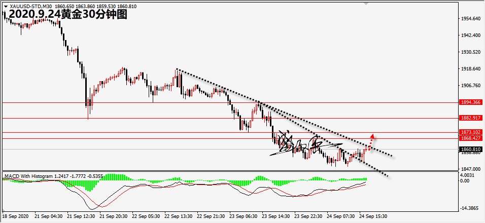 黄金 黄金晚盘整日笔者的预期,美盘前金价在1848位置二次获得支持后回升,美盘开盘金价再度回踩1851一线后开始上涨,目前黄金已经站上1860上方。晚盘笔者明确给出金价回撤接近1850区域参与多头,只要根据笔者策略参与多头者,目前已经获利超10美元。需要注意的是,今日暂时只能看成黄金的反弹,在低位区