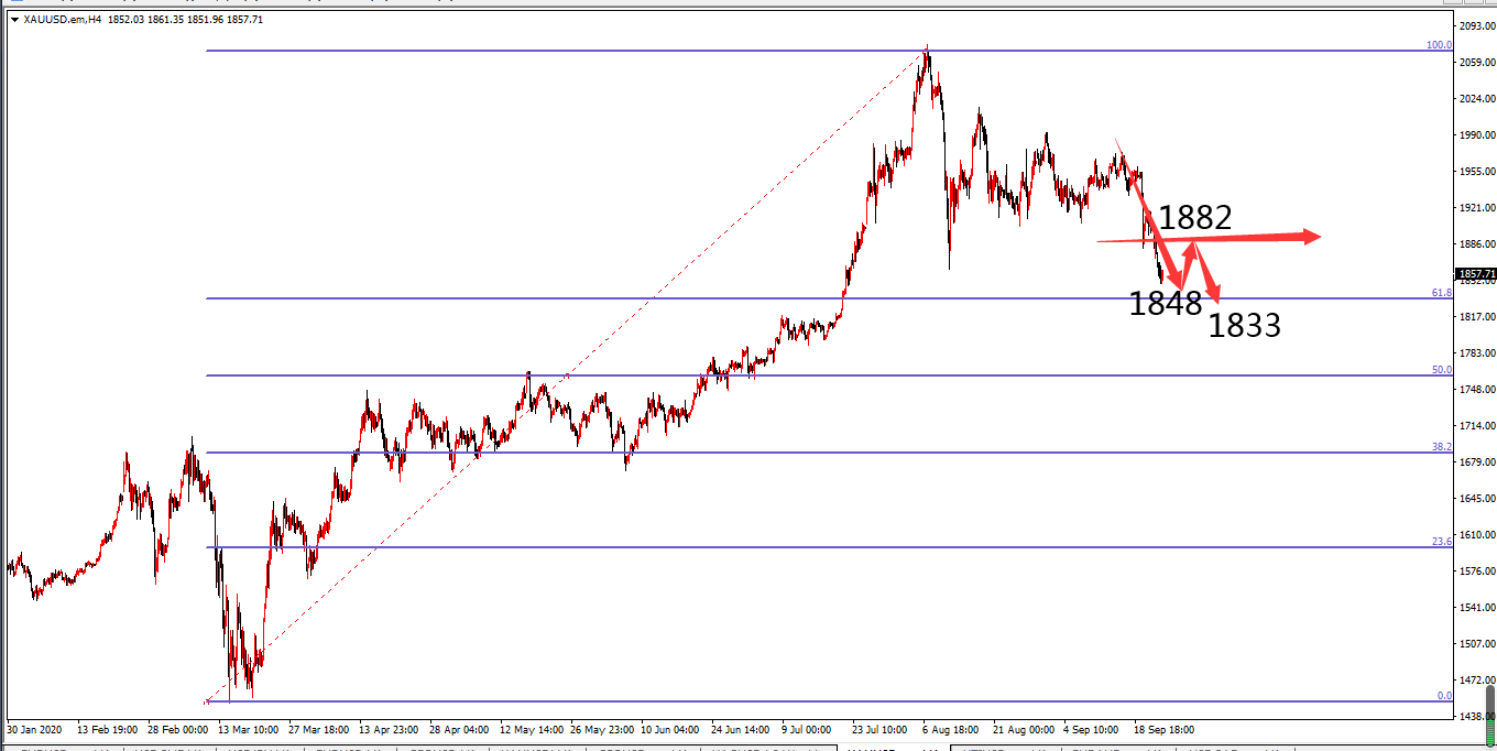 晚间我们直奔主题,午间我们通过博文强调了日内的走势方向,主要是围绕空头去布局,原因在早间也是做出了说明,一方面是日线三连阴的走势,金银双双收低,且凌晨向下延续,收线于前期低点1863附近,这奠定了今日走低的基础,也是因此我们不惧早间的反抽以及午后的反抽,均是看空做空的思路,虽然整体的跌势不大,但始