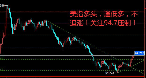 多余的话不说前期日线四次绝望诞生美元也是连续突破上涨,连续上涨四天以后都是不要在追,毕竟这个上行马上遇到压力区域94.6到95位置,前期94.6是调整低点起涨的位置,如今是顶底转换第一压力,其次95区域是2019年度95到97.7区域横盘下轨的支撑,如今成为压力区域。那这样就是可以轻松得到94.6到95区域在没有特比利好