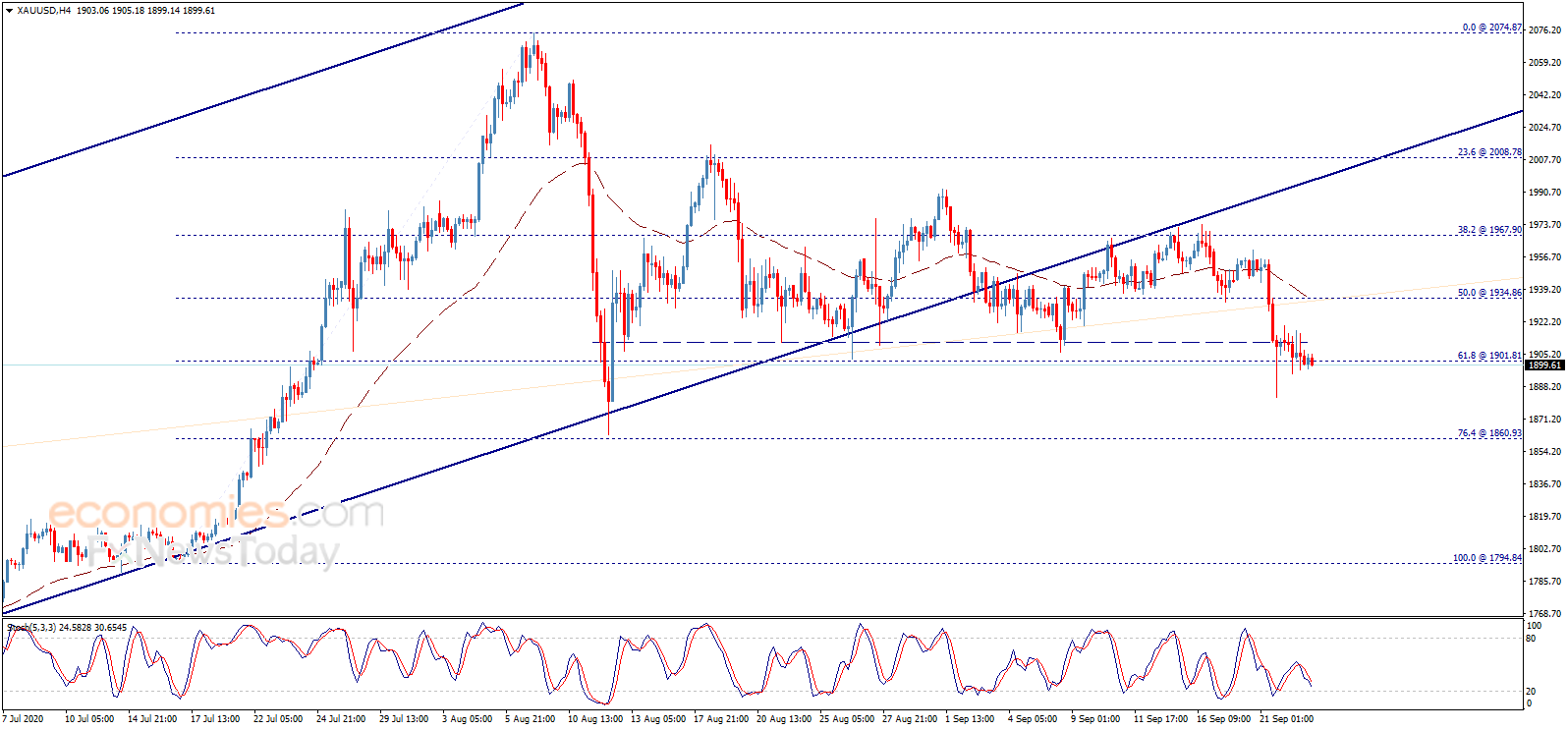 周三(9月23日)亚市尾盘,现货黄金继续承压,金价现报1886美元/盎司附近。知名财经资讯网站cooi.co周三最新撰文,对日内黄金走势进行前瞻分析。 根据cooi.co,金价在昨日收于1901.80美元/盎司下方后已经确认跌破这一关键水平,这可能令金价后市进一步大跌。 cooi.co在文章中写道,金价
