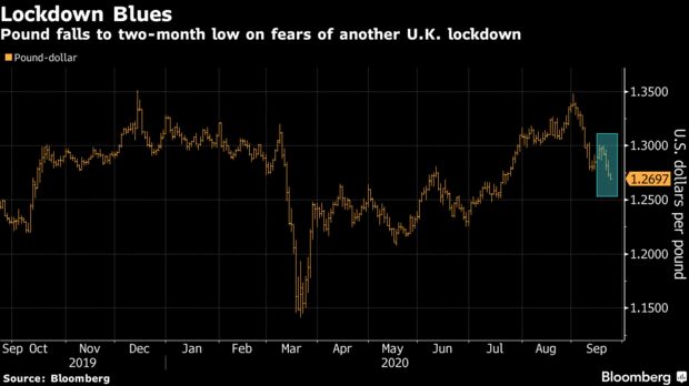 英镑兑美元周三延续跌势,本月料创四年来最差月度表现,此前英国宣布了新的抗疫限制措施。 欧盘时段,英镑兑美元处于两个月低点1.2695美元。英镑9月迄今累计下跌5%,为2016年以来表现最差的月份。 英国首相约翰逊下令餐馆和酒吧提前打样,并鼓励民众居家办公,并称新的限制措施可能持续六个月。