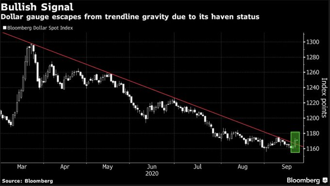 刚刚,美元指数又急涨,刷新7月28日以来高点至94.17,涨幅约0.21%。昨日美元继续大涨,一度顶破94关口,创八周新高至94.08,因美联储大鸽派埃文斯提到升息前景显鹰派基调,而且美国经济刺激方案通过前景渺茫加之新冠疫情反弹,也推升美元的避险需求。 刚刚,美元指数又急涨 美联储大鸽派意外“说
