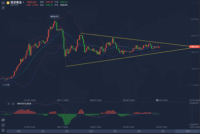 周五黄金继续走震荡,冲高回落之后,回归震荡,走势继续保持在日K的震荡之中。这已经是第五周走完震荡,本周是第六周。纵观前面的走势,周K震荡向上,但是碎阳,然而指标死叉向下,价格确实横盘抗跌,因此,周K这里是横盘时间换空间。周K后期还会有一次冲击高点的走势,也就是二次冲顶,冲击2000-2075这个的走势。