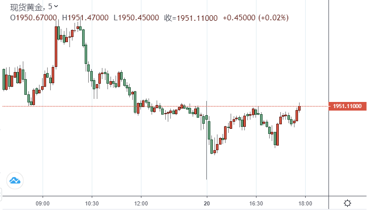 周一(9月21日)亚市早盘,现货黄金小幅走高,现报1950美元附近。上周,现货黄金在1932至1973美元之间宽幅震荡,周五从前日的暴跌中拉升,收报1950.30美元/盎司,上周累涨0.53%;美元指数上周宽幅震荡,周二失守93后隔夜反弹,美联储决议至周四早间不断强势拉升,周四日间触及周高93.63,但周五又回落至93关口下方,