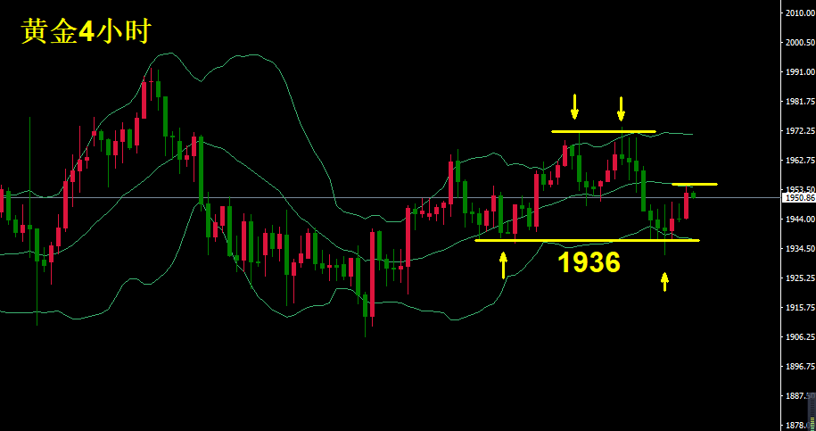昨日黄金开盘后整体下挫,日内最低跌至1932附近,随后在4小时图布林线下轨找到支撑,进行震荡筑底,并没有对前期的1936重要支撑进行有效突破,今天展开反弹。 从日图上,黄金处于收窄震荡之中,本来预期利率决议之后方向将会明朗,但金价走势仍然平静,近日来金价每天平均波动幅度30美金以下,预计在没有数据消