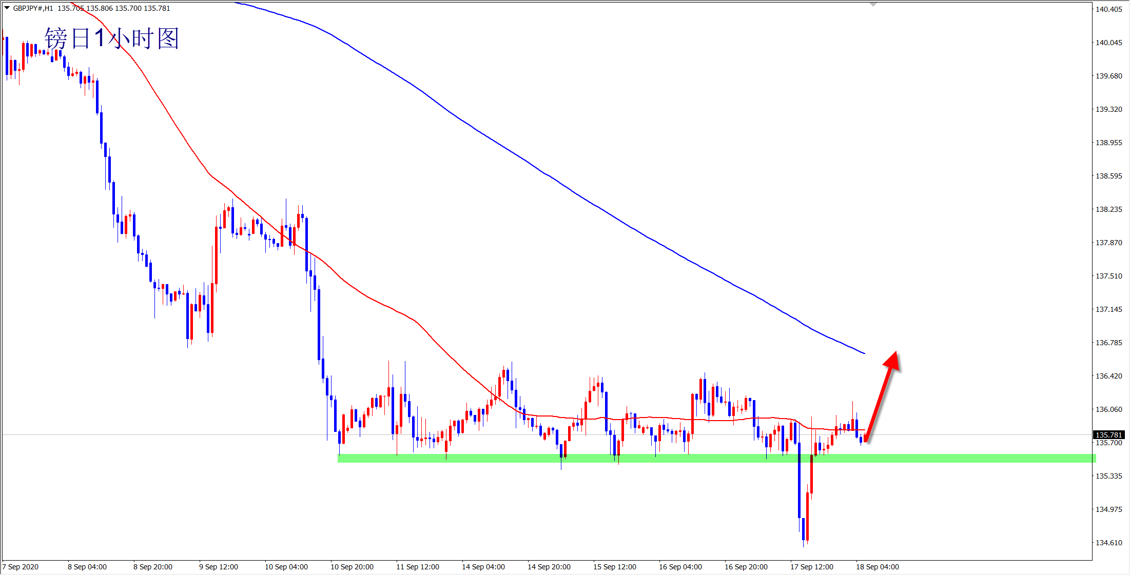 镑日昨日横盘后快速下跌,但是空头未能延续,而是深v反转拉升,快速收复失地,反弹开启,早盘13.5上直接干多! 镑日最近虽然深度回调,但是依然看做是日线级别上涨过程中的回调,而135附近也是此前日线盘整位置的上方支撑,行情跌至此位置后必然获得支撑然后开启反弹,本次反弹虽然不能确定是否突破新高,但是