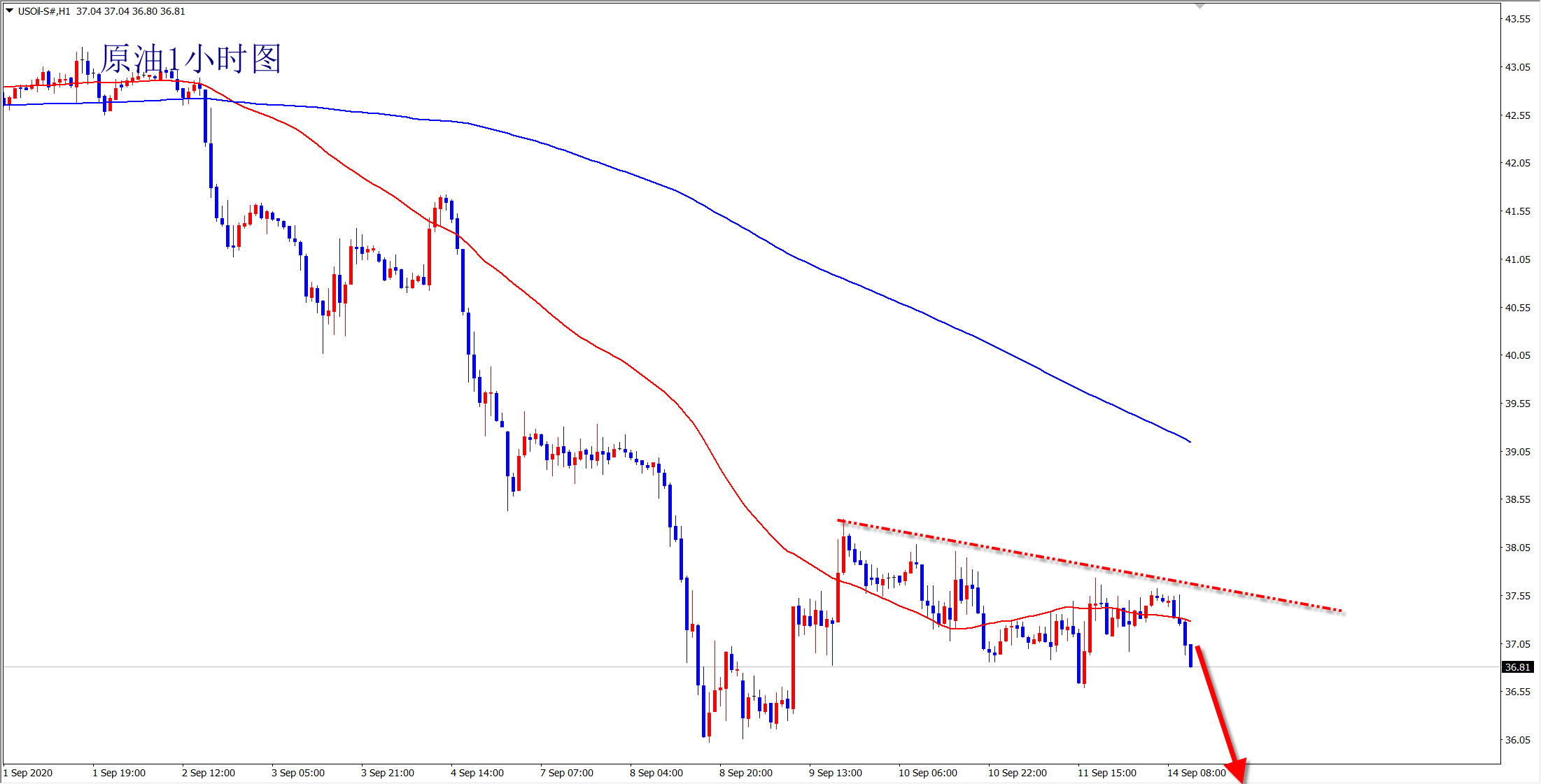原油37.4现价空单进场,冲高后回落,空头就是空头,反弹永远成不了气候,只是给到我们再次狙击干空的绝佳点位而已!37.4现价空如期下得至36.8兑现利润!跌势未止,剩余仓位继续下看36一线,破位加仓多,看新低! 对于原油的走势已经提示多遍了,此前盘整状态时,我们一直观望,因为实在没有可以操作的