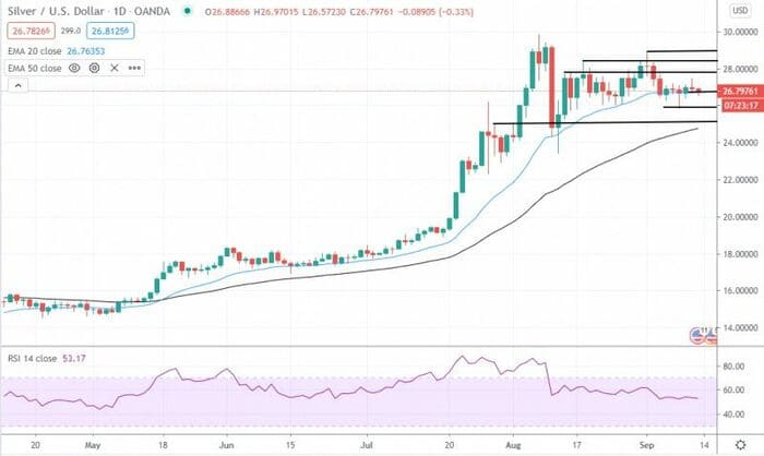 周五(9月11日),随着美元走低,金价继续横盘交易,小幅下跌,但本周预计将收涨。 美国8月份消费者价格指数(CI)上涨0.4%,二手车和卡车价格升至51年来的最高水平,原因是美国人担心感染疫情而不再使用公共交通工具。6月和7月CI均上涨0.6%,此前3个月CI有所下降,原因是为减缓冠状病毒蔓延而关闭的企业抑制