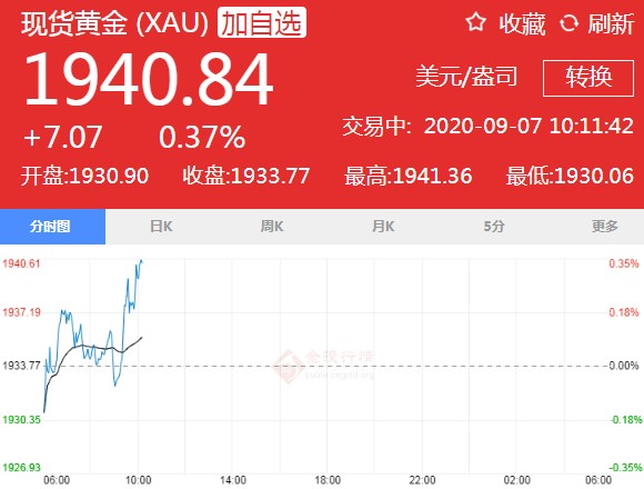 今日现货黄金价格走势(2020年9月7日) 今日现货黄金价格1936.60美元/盎司