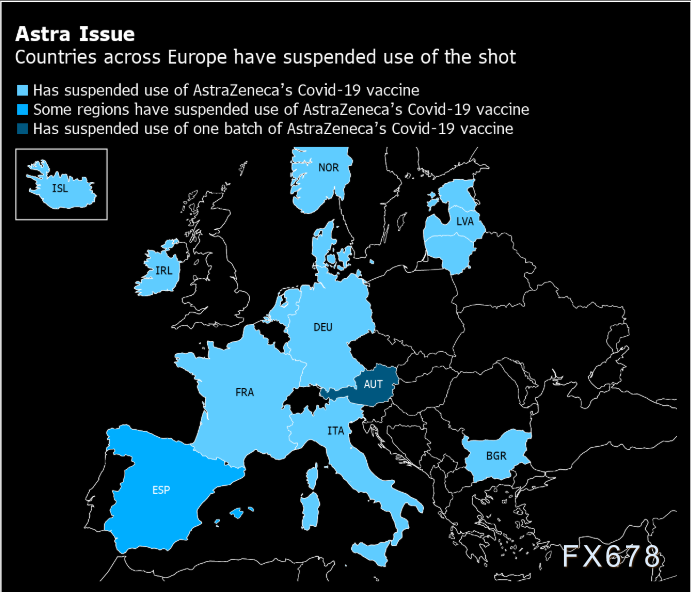 德意法三国暂停使用阿斯利康疫苗,安全担忧打乱欧盟接种工作,这使得欧元区经济复苏前景受到拖累,增加了欧元的短线下行风险。 德、法、意暂停接种阿斯利康的新冠疫苗 德国、法国和意大利周一(3月16日)表示,将暂停接种阿斯利康的新冠疫苗,此前多个国家报告疫苗可能存在严重的副作用,但世界卫生组织(WHO)表示并不