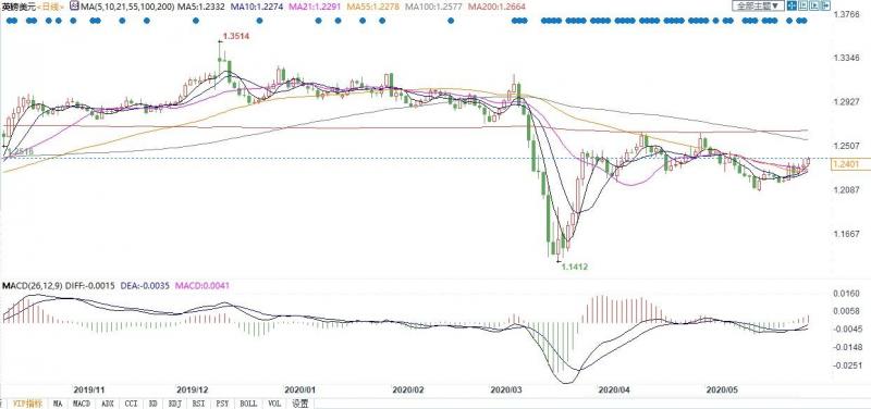 5月31日(上周日),英国《金融时报》援引匿名政府官员的话说,英国政府正准备在7月份公布一项经济刺激方案,以加大力度缓解由疫情引起的经济衰退。6月1日亚市早盘英镑兑美元一度顶破1.24关口,刷新三周高点至1.2415。本周英国与欧盟将启动脱欧第四轮谈判,相关消息将左右英镑未来走势,投资者也需保持关注。