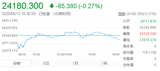周三(5月13日)恒指小幅整理,早盘低开高走,盘中一度翻红,尾市稍有回落。 截至收盘,恒指跌0.27%,报24180.3点,成交金额1035.4亿港元。 两会预期在恒指表现坚挺 恒指今天虽说是跌破了短期均线,但整体走势并不算弱,修复起来也很容易,毕竟两会的预期还在。 另外A股方面今天也是