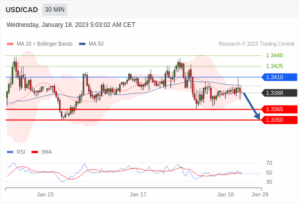 周三(1月18日)盘中,美元/加元暂报1.3380,跌0.0006,跌幅0.04%。 美元/加元汇率今日分析:在1.3410之下,看跌,目标价位为1.3365,然后为1.3350。在1.3410上,看涨,目标价位定在1.3425,然后为1.3440。 技术点评:只要1.3410阻力位不被突破,向下跌破1.3365位置的风险很高。