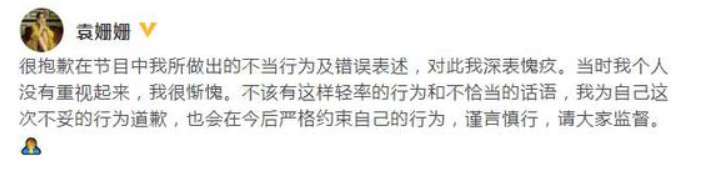 近日,针对袁姗姗在某节目中用错误方式拿取文物,在经提醒后还回复:“没事他(修复师)可以再修复”一事,对于袁姗姗的行为,网友吐槽其没文化没素质:“长点心吧,尊重别人的劳动成果。”“要知道文物修复是很难的也很费时费力的,真的不知道该说这姐耿直还是蠢1 袁姗姗发文道歉,“很抱歉在节目中我所做