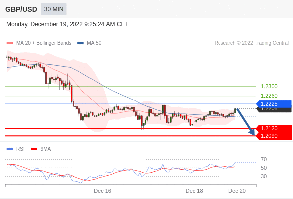 周一(12月19日)盘中,英镑/美元暂报1.2202,涨0.0051,涨幅0.42%。 英镑/美元汇率今日分析:在1.2225之下,看跌,目标价位为1.2120,然后为1.2090。在1.2225上,看涨,目标价位定在1.2260,然后为1.2300。 技术点评:上升的空间可能被1.2225阻力位所限制。 阻力位:1