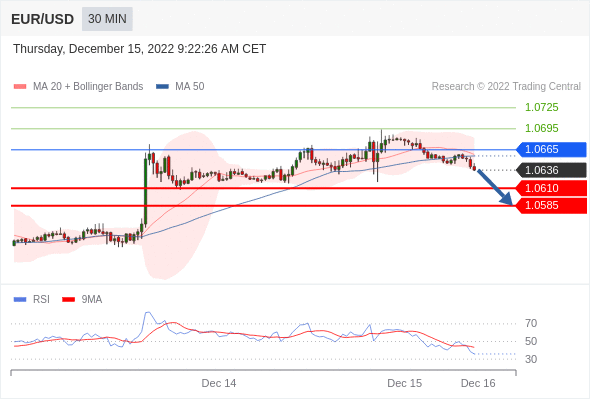 周四(12月15日)亚盘,欧元/美元低位回升,暂报1.0625,跌幅0.51%。丹斯克银行预计,欧洲央行将加息50个基点,并将在明年第一季度继续加息。 欧洲央行最新动态一览: 预计存款利率将达到2.75%的峰值,但仍存在进一步加息的风险。并预计,欧洲央行将发出鹰派言论。具体表现为,欧洲央行将提