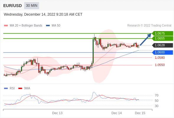 周三(12月14日)亚盘,欧元/美元低位回升,暂报1.0545,涨幅0.14%。丹斯克银行预计,欧洲央行将加息50个基点,并将在明年第一季度继续加息。 欧洲央行最新动态一览: 预计存款利率将达到2.75%的峰值,但仍存在进一步加息的风险。并预计,欧洲央行将发出鹰派言论。具体表现为,欧洲央行将提