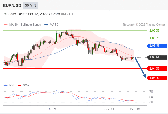 周一(12月12日)亚盘,英镑/美元冲高回落,暂报1.2219,跌幅0.39%。市场和经济学家预计英国央行将加息至4%至4.5%。英国劳动力市场的紧张使情况变得更加复杂,劳动参与率大幅下降,以至于雇主不得不为员工支付更高的工资,工会也因此更大胆地唿吁举行罢工,要求加薪;周一(12月12日)亚盘,欧元/美元高位回落,暂报1