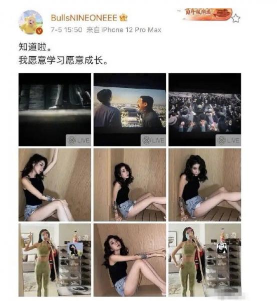 7月5日,说唱歌手乃万在社交平台上发的一则动态引起网友热烈讨论,她发文称“知道啦。我愿意学习愿意成长。”配图则为三张在电影院看《1921》拍摄下的图,后面6张则配上自己的美照以及健身照。 该动态一经发出,便引起网友热烈讨论。网友表示,前三张图为盗摄行为!必须强烈抵制!并且乃万的电影盗摄图还是实况