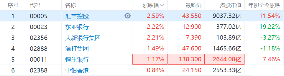 香港银行股集体走强,其中汇丰控股,东亚银行,大新银行集团涨2%,渣打集团,恒生银行涨1%,中银香港跟涨。 花旗发研报称,预测美联储可能将于11月宣布缩减买债,2022年12月起每年加息3至4次;而在亚洲银行中,香港银行最受美国债券受益率上升的影响;在香港本地银行股中,该行首选汇丰控股,指估值吸引