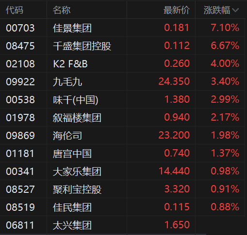 港股餐饮股普遍上涨,九毛九涨3.4%、味千中国涨3%,叙福楼、大家乐等多数上涨,海底捞小幅走低。 国庆假期,在疫情防控常态化条件下,接触型消费加快回升,餐饮消费加快恢复。据统计,今年上半年,餐饮业收入达21712亿元,同比增长48.6%,消费规模基本恢复至2019年同期水平。值得一提的是,大大小小的饭