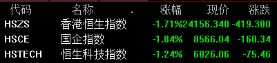 港股低开低走,恒指、国指盘初一度急跌超2%,恒生科技指数跌1.8%。