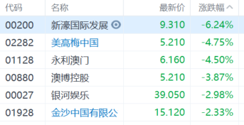 濠赌股集体下跌,新濠国际跌逾6%,美高梅中国、永利澳门跌逾4%,澳博控股跌逾3%,银河娱乐、金沙中国跌逾2%。联交所最新权益披露资料显示,永利澳门于9月20日遭美国资本集团在场内斥资约1.02亿港元减持1729.4万股,减持后,其持股比例由7.20%降至6.87%。 摩通最新发研报指,澳门因应有2名人士确诊新冠肺