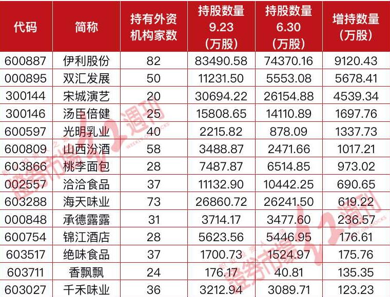 业绩的超预期,显然也吸引资金的关注,但对于机构在消费股上的最新持仓情况,因公募基金和上市公司三季报未公布还不得而知,不过若结合每日上市公司公布的外资持股情况看,还是可看到不少食品饮料或休闲服务公司的最新外资持仓情况,有多家公司获得外资增持。譬如伊利股份,其9月23日外资的最新持仓为8.35亿股,