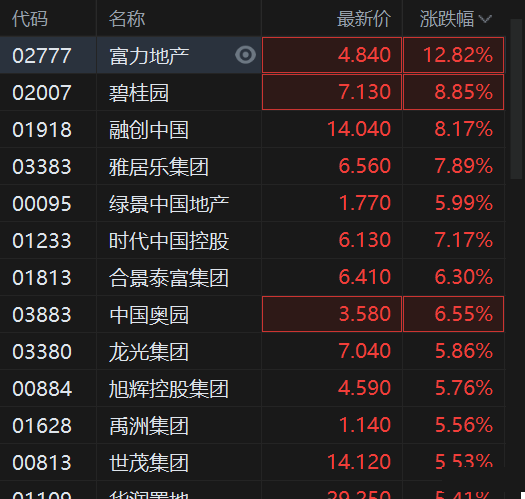 恒指翻红转涨至0.25%,此前一度跌超1%;恒生科技指数跌幅收窄至0.4%,此前一度大跌超2%。地产股、物管股、濠赌股领衔反弹。