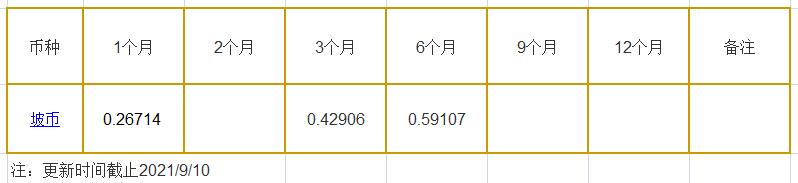 9月10日新加坡银行间同业拆借利率坡币: 1月期报0.26714%, 3月期报0.42906%, 6月期报0.59107%。