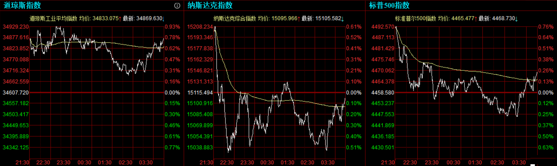 美股收盘三大指数涨跌不一,纳指连续第4个交易日收跌。道指与标普500指数连续5个交易日下跌后略微反弹。市场关注美国疫情与民主党即将提出的加税方案、以及本周将公布的通胀数据。 道指收涨261.91点,或0.76%,报34869.63点;纳指跌9.91点,或0.07%,报15105.58点;标普500指数涨10.15点,或0.23%,报44