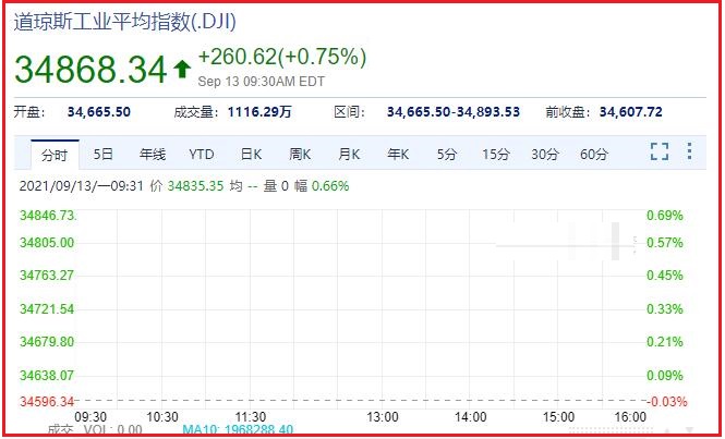 美股三大指数集体高开,道指涨0.66%,纳指涨0.59%,标普500指数涨0.69%。大型科技股普遍反弹,苹果涨超1%,此前回应ic案裁决称,商业模式不会改变。热门中概股普跌,阿里巴巴、网易、哔哩哔哩跌超1%。 1、截止发稿时间,道琼斯报于:34851.05,成交量:1479.28万 2、美股快报:受疫情反弹影响,