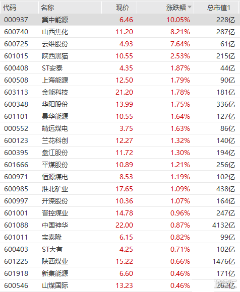 煤炭板块继续高开,山西焦化涨超8%再创历史新高,冀中能源涨停,云维股份涨超7%,陕西黑猫、上海能源等纷纷跟涨。 煤炭期货涨势不止,焦煤、焦炭期货主力合约盘中涨超5%,动力煤涨超3%。国泰君安发布研报认为,虽然当前面临旺季淡季切换,但由于冬季的旺季时间很长、补库的时间很短(只有9-10月),鄂尔
