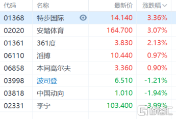体育用品股走势分化,特步、安踏涨超3%,361度涨超2%;中国动向跌近2%,昨日盘中高见108.2港元创历史新高的李宁今日高开低走,现跌约4%。 摩通日前发报告指,内地体育用品股今年上半年整体业绩优于预期,李宁中期盈利按年升187%,优于安踏(升132%)及特步(升72%)。该行指,虽然内地新冠疫情形势和