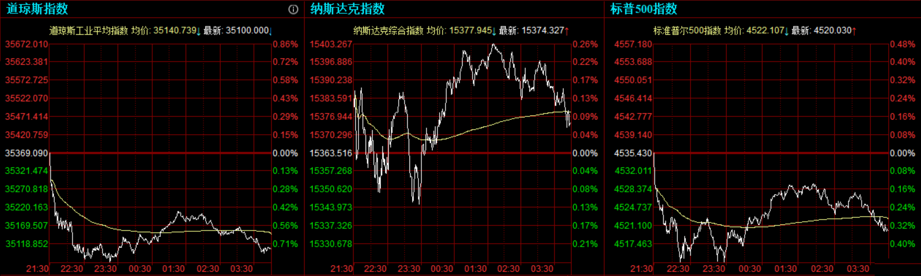 美股三大指数收盘涨跌不一,投资者担心疫情反弹会抑制经济增长,因此拖累道指和标普500指数下跌。多个标普板块周二收跌,工业、公用事业、日用消费品和房地产板块跌幅均超过1%。高盛与摩根士丹利等相继下调美国经济增长预期。摩根士丹利将标普500指数的年终目标点位维持在4000点,较上周五收盘的4535.43点下跌约12%。