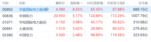 中信证券研究指出,近期内蒙、宁夏等多省陆续放开火电电价机制中的上浮交易限制,政策信号开始向涨电价倾斜;如各省市火电上网电价均按照基准+上浮10%执行,预计煤电企业电价可提升约0.05~0.06元/千瓦时,该涨幅能有效缓解近期煤价上涨压力,加速火电走出周期底部并重新恢复高弹性。预计电价上涨预期强化将催化火电板块
