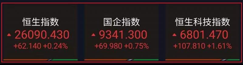 昨日回顾: 1.恒指早市先高开175点至26203点,其后曾略作整固而轻回至26151点。惟在腾讯(700)、美团点评(3690)及阿里巴巴(9988)等主要恒指成份股做好带动下,市势卒再进一步推上。港股高开后涨幅缩窄,截至收盘,恒生指数涨0.24%,报26090.43点,国企指数涨0.75%,红筹指数涨0.89%; 2.恒生