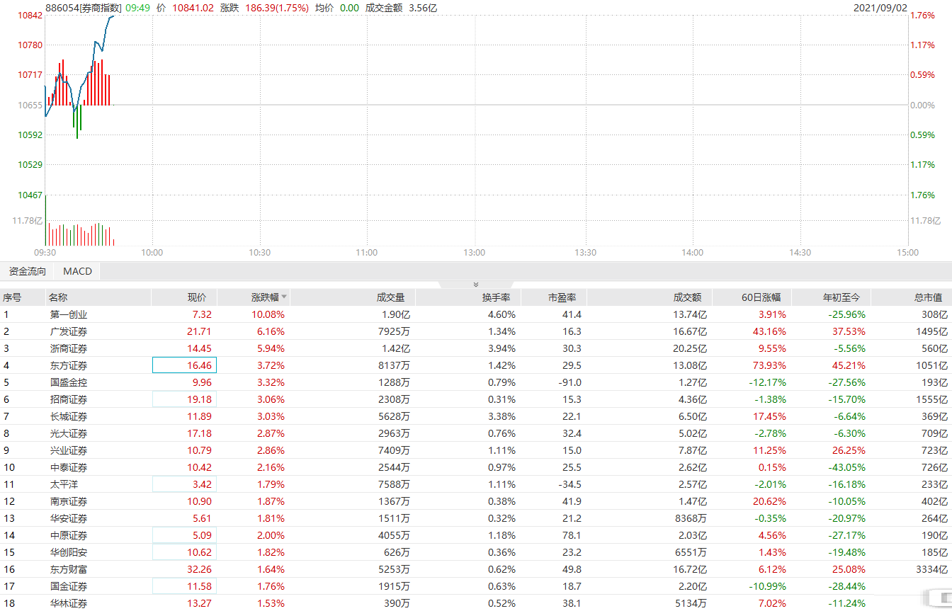 券商板块再度发力,第一创业涨停,广发证券涨超6%,浙商证券涨近6%,东方证券、国盛金控、招商证券等跟涨。本周市场成交量突然放大,昨日沪深两市成交额1.71万亿元,创年内新高,为连续第31个交易日在万亿上方。其中沪市成交额突破8000亿元大关,创2015年7月24日以来新高。 随着上半年券商和公募基金半