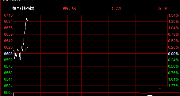 港股主要指数短线拉升上扬,恒指涨0.19%,国指涨0.67%,恒生科技指数涨1.4%。此前三大指数均下跌。